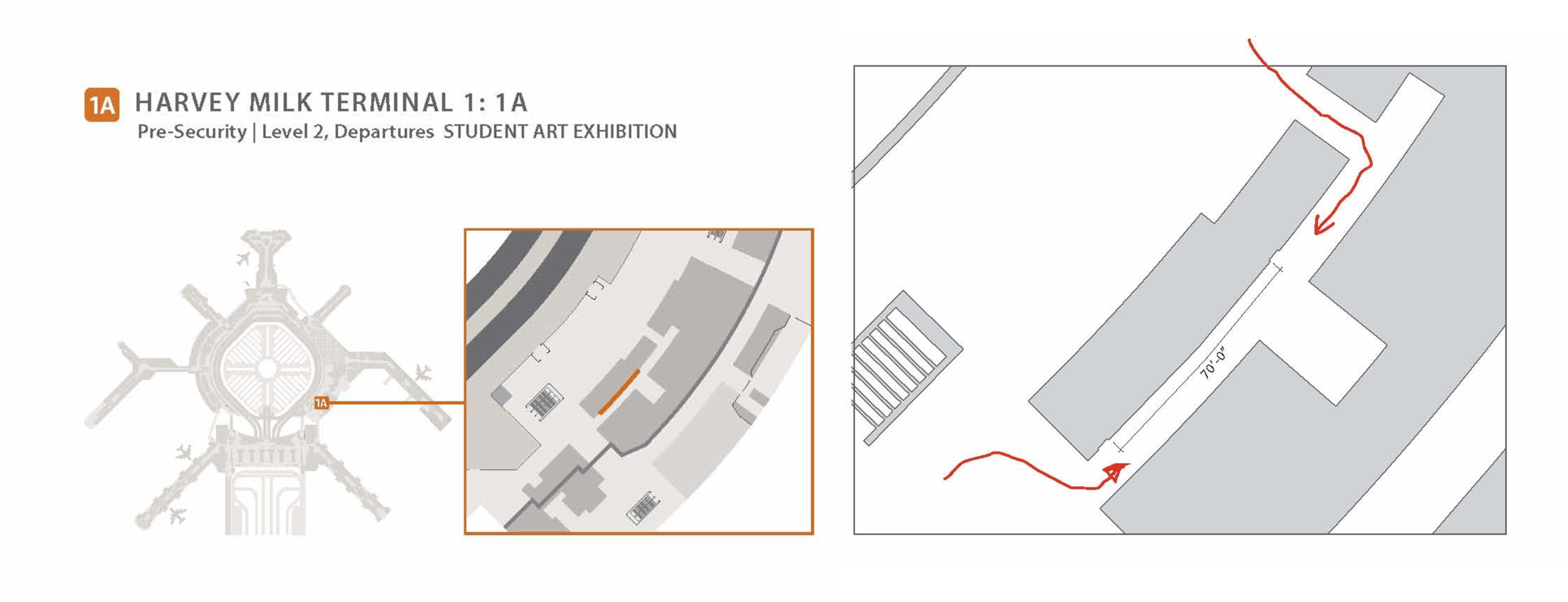 Presecurity in Harvey Milk Terminal 1, Departures Level 2, Gallery 1A (See map below)